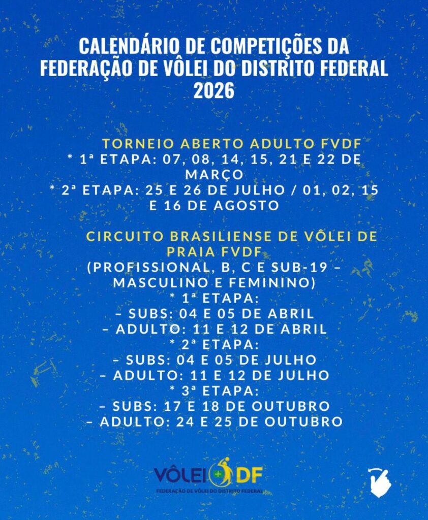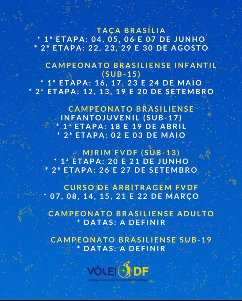 O Site da Federação será alimentado constantemente com as datas e competições que serão promovidas pela FVDF ou que atuaremos como parceiros. Daremos início nos trabalhos em quadra à partir do mês de março, fora dela já estamos trabalhando desde o início do ano para que possamos fazer um ano produtivo e com bastante competições para que nossos atletas possam entrar em ação e melhorar seus rendimentos a cada jogo.