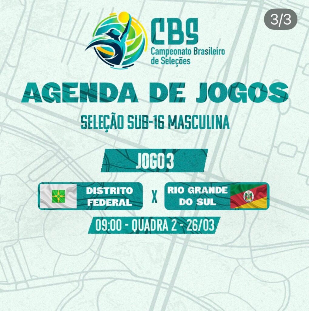 A equipe do DF irá enfrentar amanhã às 09 horas a equipe do Rio Grande do Sul e como está num grupo bem equilibrado ainda pode avançar na competição, as três primeiras equipes do grupo “A” estão com 03 pontos e uma vitória no jogo de amanhã aliada a uma combinação de resultados poderá nos levar à próxima fase e nos manter vivos. Ainda tem jogo garotada, cabeça erguida e força nessa bola.